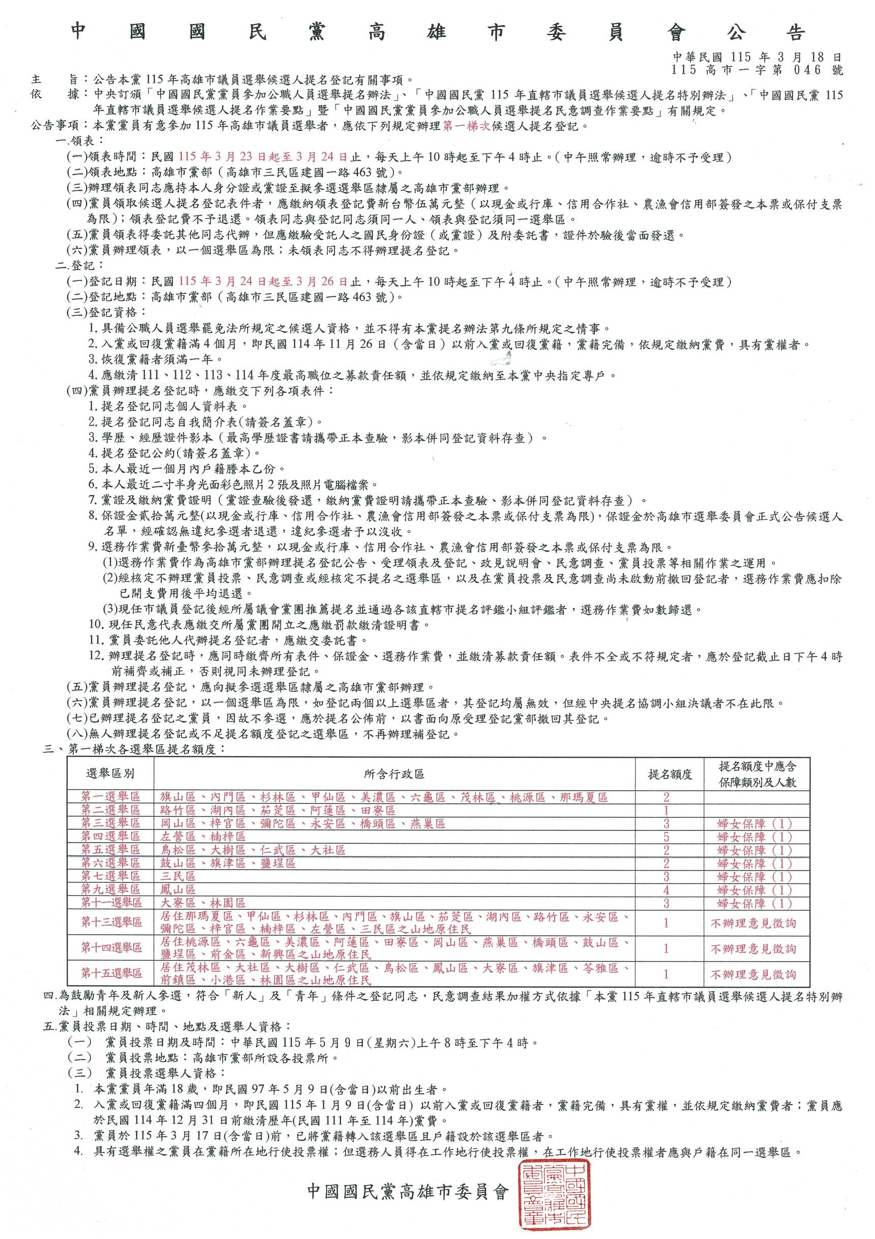 中國國民黨高雄市委員會 新聞稿 115 …